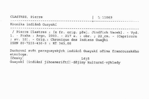 | Autor | Pierre Clastres ; [z francouzského originálu přeložil Jindřich Vacek] |