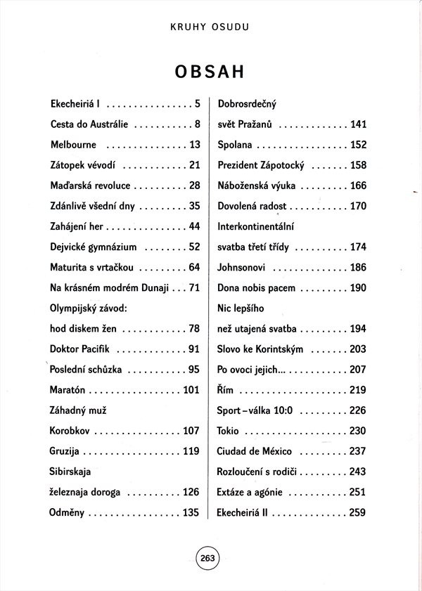 Slavná československá diskařka vzpomíná na své dětství, mládí a úspěch na Olympijských hrách v roce 1956 v Melbourne. Svatba s americkým kladivářem Haroldem Connolym v době "železné opony" naprosto změnila její dosavadní život, měla s ním čtyři děti a zúčastnila se dalších OH v Římě, Tokiu, Mexiku a Mnichově, ale už v dresu USA. Kniha je doplněna černobílými fotografiemi.