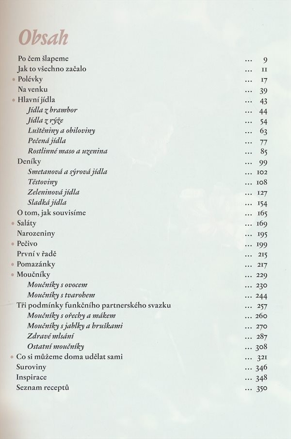 Recepty na přípravu bezmasých jídel ze zeleniny, brambor, luštěnin a obilovin, těstovin, polévek, salátů, pomazánek, pečiva včetně chleba a moučníků.