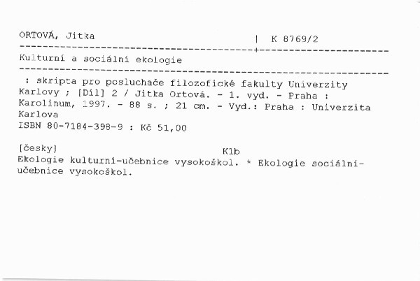 | Název | Kulturní a sociální ekologie |