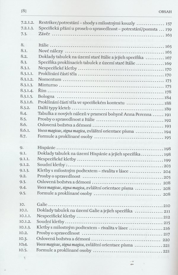 Studie mapuje a analyzuje dochované latinské proklínací tabulky (defixe) z doby a území římské říše. Latinské proklínací texty, ryté převážně do olověných destiček, byly určeny k nadpřirozenému negativnímu ovlivňování života osob a zvířat.