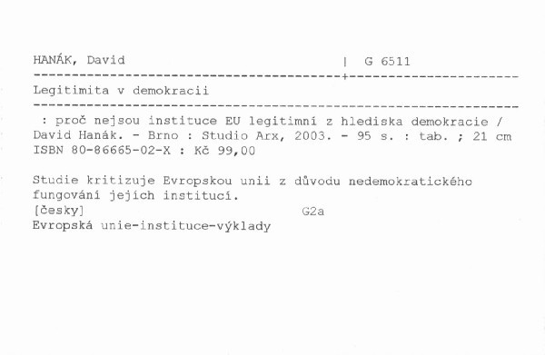 | Podnázev | proč nejsou instituce EU legitimní z hlediska demokracie |