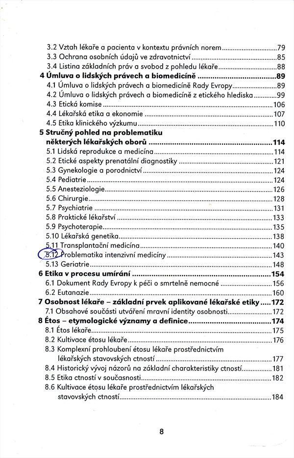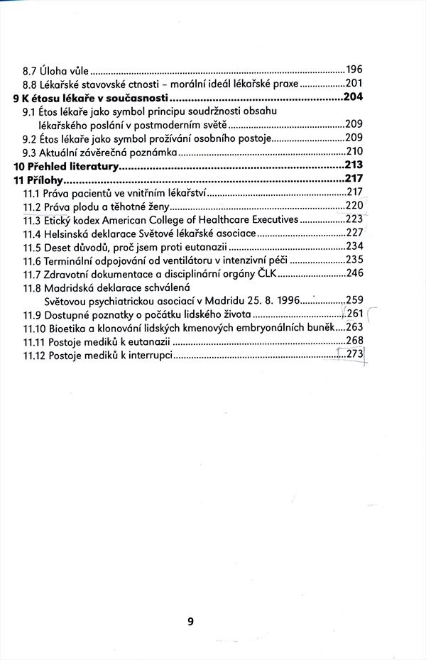 Odborná publikace je věnována především lékařům, pracovníkům ve zdravotnictví a studentům medicíny a klade důraz na etiku a morálku v lékařské práci. První kapitoly definují etiku a morálku jako základní předpoklad lékařského etického přístupu, vracejí se do historie lékařské etiky, zabývají se specifiky lékařské etiky, úmluvami o lidských právech a vztahy mezi lékaři a pacienty. Další kapitoly se zabývají problematikou některých (zvláště novějších) lékařských oborů, postojem k eutanazii, interrupcím apod. Kniha je doplněna podrobným přehledem literatury a mnoha přílohami. 1. 7. 2002 Selinges