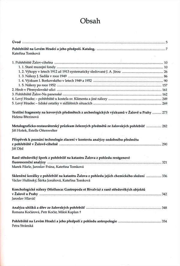 Rozbor archeologických nálezů (anorganických materiálů i antropologického fondu) objevených na pohřebišti v Levém Hradci a Žalově. Text je doplněn nákresy a fotografiemi.
