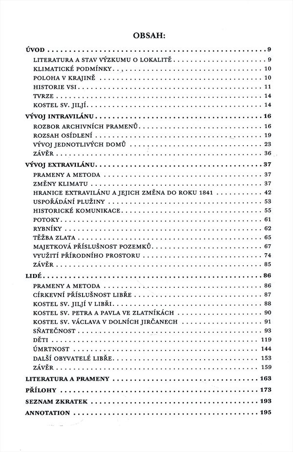 Kniha se zabývá celkovým studiem podoby drobného sídla v zázemí Prahy v raném novověku – rozvojem intravilánu, extravilánu, populačním vývojem i pomístními názvy.