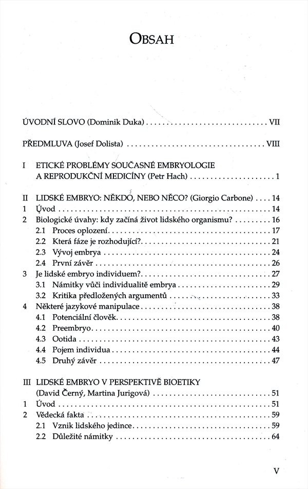 Kolektivní monografie se věnuje etickým otázkám současné embryologie a reprodukční medicíny, zejména procesu oplození a vývoje embrya.