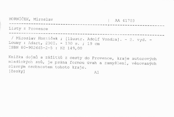 Knížka dojmů a zážitků z cesty do Provence, kraje autorových mladických snů, je psána formou úvah a zamyšlení, věnovaných slavným osobnostem tohoto kraje.
