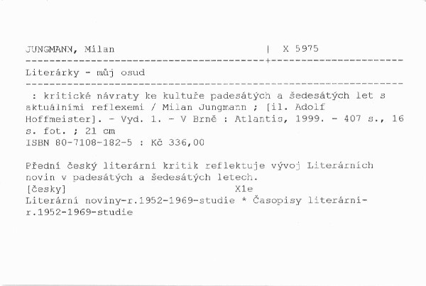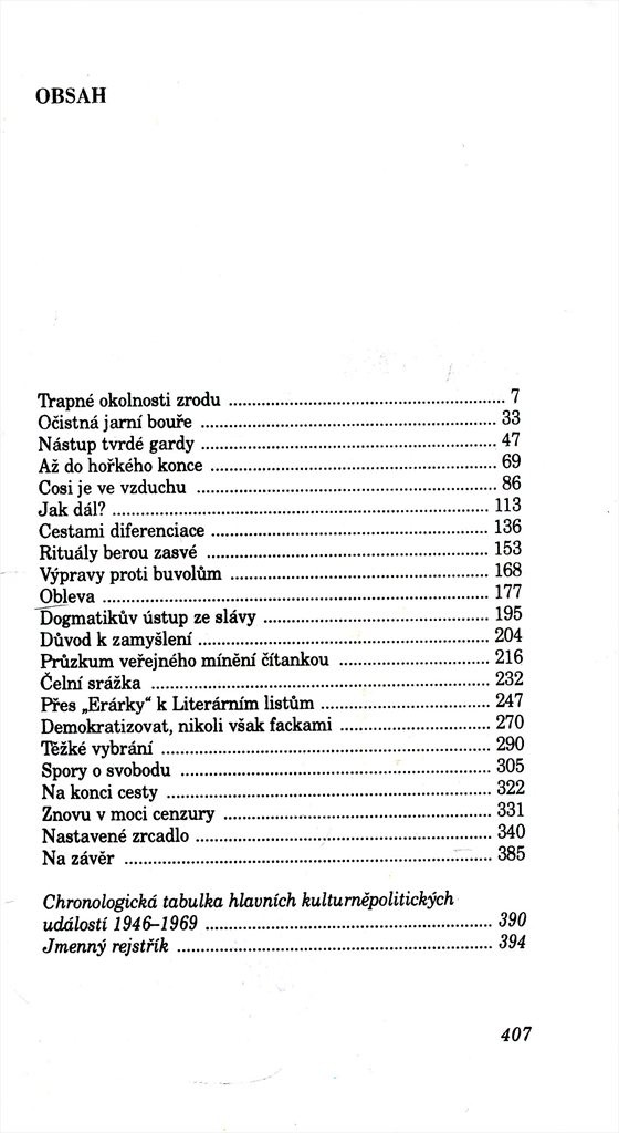 Komentář k intelektuálním a uměleckým polemikám přibližuje nejen dobovou situaci v oblasti kultury, ale i permanentní spory s ideologickým ústředím. Jungmannův text tudíž rekapituluje kulturní a politickou situaci padesátých a šedesátých let na základě dobových diskusí na stránkách tisku i redakčních polemik.