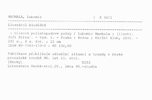 Publikace přibližuje aktuální situaci a trendy v české prozaické tvorbě 90. let 20. stol.