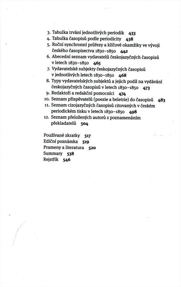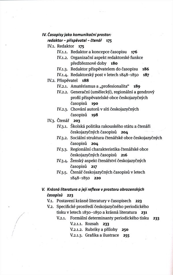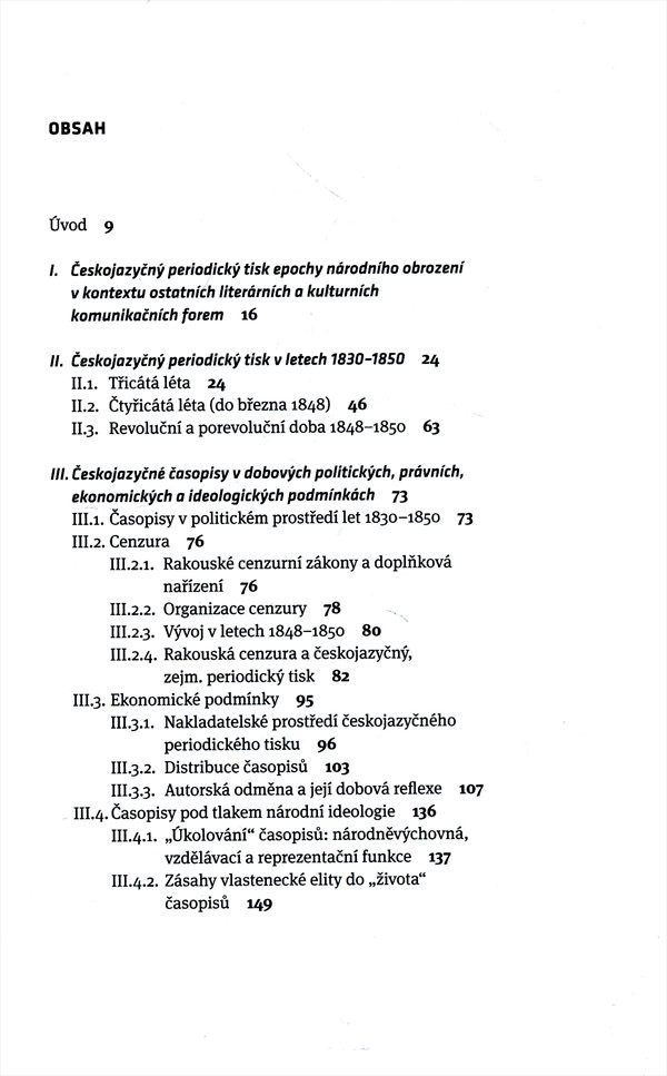 Práce postihuje literární kulturu národního obrození prostřednictvím rozboru českojazyčného periodického tisku let 1830-1850. Zkoumá význam, které měly časopisy z Čech, Moravy a slovenských Uher pro literární život tohoto období.