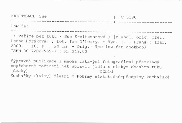Výpravná publikace s mnoha lákavými fotografiemi předkládá nepřeberné možnosti jak upravit jídla s nízkým obsahem tuku.
