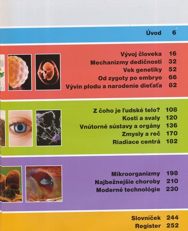 Ilustrovaná publikace obsahuje informace o vývoji, stavbě a funkci zdravého lidského těla. Seznamuje s vývojem člověka v průběhu tisíciletí, přibližuje pohled na vznik lidského života, seznámí s poznatky moderní lékařské vědy atd.