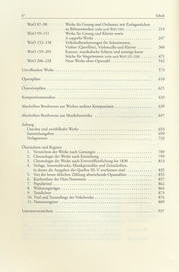 Aktualizovaný tematický katalog úplného díla L. van Beethovena. Textová část shrnuje problematiku vydávání skladatelova díla vč. nakladatelských katalogů a katalogu Kinského-Halma. Následuje dvousvazkový seznam s popisem všech jeho skladeb.