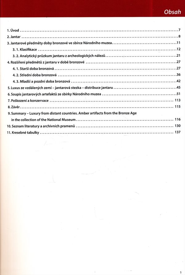 Katalog jantarových archeologických nálezů z doby bronzové, které jsou součástí sbírek Národního muzea.