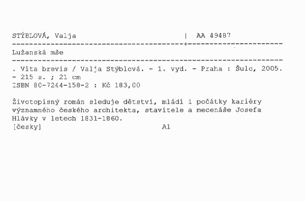 Vydání: Šulc 2005 | Jazyk: čeština | Signatura: AA 49487