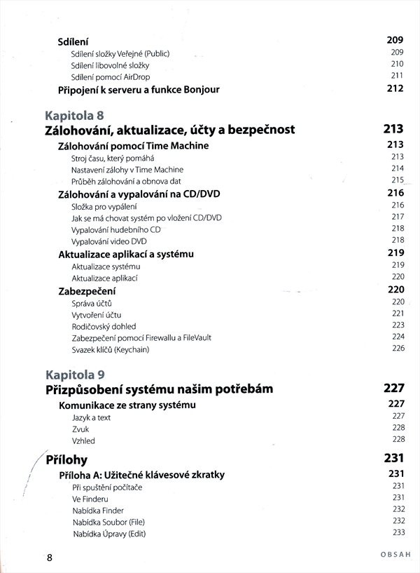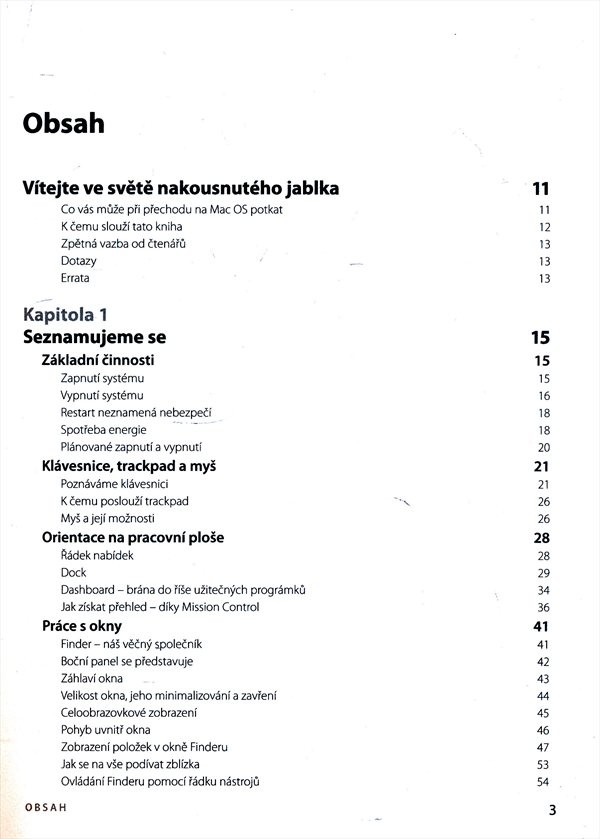 Publikace srozumitelným způsobem uvádí do prostředí operačního systému Mac OS X. Seznamuje s hlavními prvky uživatelského prostředí, osvětluje základy práce se soubory a aplikacemi. Obsahuje kapitoly věnované prohlížení Internetu (prohlížeč Safari), e-mailové komunikaci, správě fotografií a multimédií či kancelářským aplikacím, jež jsou dodávány s Mac OS. Zabývá se rovněž problematikou zálohování, aktualizací, účtů, dále bezpečností a přizpůsobením systému potřebám uživatele.