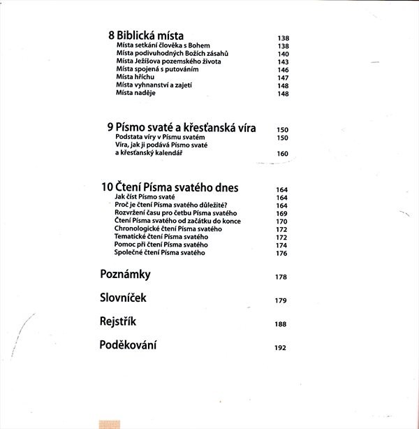 Práce vysvětluje, co je Písmo svaté, co obsahuje, pokouší se o stručný rozbor Starého i Nového zákona, popisuje biblické postavy, národy i místa a zároveň radí, jak a proč číst Písmo svaté. Součástí textu jsou rovněž obrázky, fotografie, rejstřík, poznámky i slovníček vysvětlující nejdůležitější pojmy.