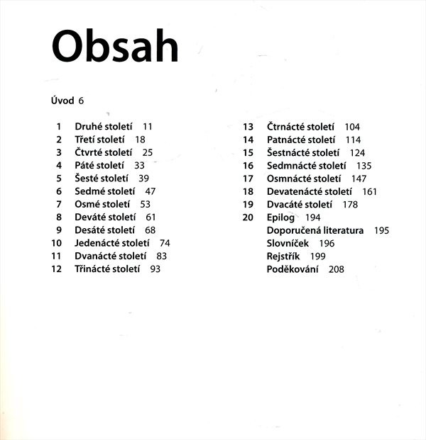 Kapitoly jsou v publikaci řazeny chronologicky od 2. do 20. století. Nezabývají se jako další podobné publikace pouze křesťanstvím v Evropě, ale v celém světě. Věnují se stejnou měrou třem hlavním křesťanským směrům - katolictví, pravoslaví a protestantismu. Dále jsou v jednotlivých staletích popsány např. teologické spory, šíření křesťanství, otázka křesťanských herezí, křížové výpravy, koncily, reformace, ale např. i keltské křesťanství nebo misie apoštolů Slovanů. Popsáno je i křesťanství v Číně, Indii, Africe, Latinské Americe nebo v komunistickém Rusku. Bohatě ilustrováno. Připojeny stručné medailonky významných osobností, přehled nejdůležitějších pojmů a událostí, slovníček.