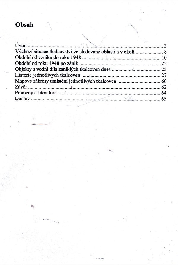 Studie se zabývá tkalcovnami o dvou až čtyřiceti stavech na vodní pohon na Zlatém potoce a jeho přítocích v severní části Orlických hor. Zahrnuje celé období jejich existence, léta 1894 - 2001.