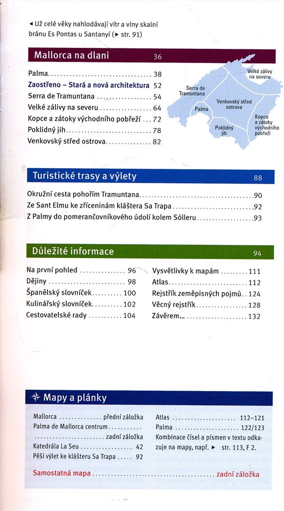 Průvodce seznamuje ve stručnosti s nejvýznamnějšími kulturně-uměleckými památkami a přírodními zajímavostmi největšího a nejnavštěvovanějšího z Baleárských ostrovů.