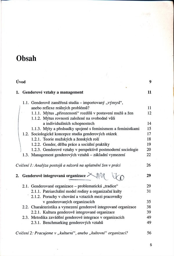 Postavení, uplatnění a vzájemné vztahy mužů a žen v organizacích, jejich managementu - to stojí v pozornosti této knihy, která si klade za cíl uceleně popsat zmíněnou problematiku, ale také podpořit zájem čtenářů o gender studies, naučit je vyhýbat se stereotypním pohledům na vztahy mužů a žen v podnicích, firmách i ve společnosti. Jedná se o publikační výstup dvou českých grantových projektů - "Vytváření podmínek pro rovnocenné uplatnění mužů a žen v organizacích a jejich řídících složkách" a "Životní strategie v české podnikatelské sféře 90. let". Obsahově se jednotlivé kapitoly orientují na zdůvodnění významu genderové problematiky ve vztahu k managementu, řízení a fungování organizací a dále na možnosti genderové integrace, kulturu tzv. genderově integrované organizace. Zvláštní pozornost je věnována postavení a uplatnění žen v managementu, a to včetně otázek vztahů pracovní a rodinné sféry, genderových předsudků a projevů diskriminace. V závěru knihy jsou načrtnuty rysy učení se novým zásadám a principům uspořádání genderových vztahů. Tomu ostatně slouží speciální cvičení na konci každé kapitoly, která mají napomáhat k navození genderové citlivosti a povědomí. Kniha je určena primárně pracovnicím a pracovníkům v manažerských oborech a personalistice, studentům a studentkám, nicméně ji určitě ocení všichni zájemci o gender studies a rovné příležitosti žen a mužů.