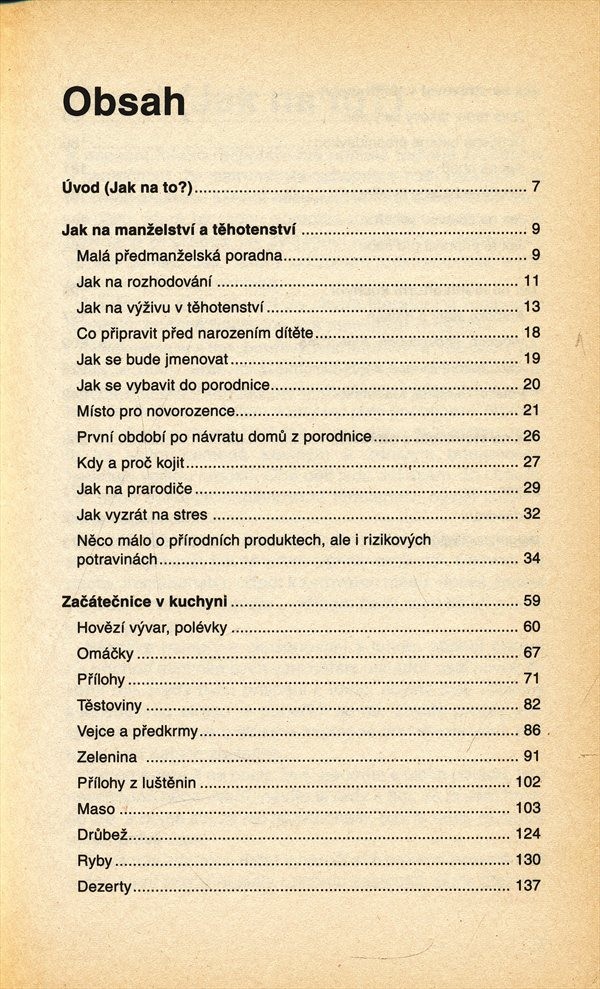 Prolínání dvou příruček, zabývajících se spokojeným rodinným životem. Rady do manželství, návod na zvládnutí těhotenství a recepty mezinárodní kuchyně.