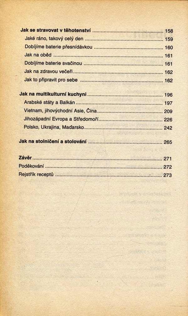 Jedná se o dosti nejasné prolínání dvou příruček, zabývajících se spokojeným rodinným životem. Obě příručky by lépe fungovaly samostatně, postačilo by i přesnější rozdělení v rámci jedné knihy. 1) plánování svatby, manželský život a rady pro začínající kuchařku, recepty mezinárodní kuchyně a zmínka o správném stolování. 2) jak zvládnout těhotenství a připravit se na porod, výživa v těhotenství - důležité prvky a vitamíny, které nesmí chybět ve stravě budoucí maminky, zásady stravování a recepty sestavené s ohledem na citlivý žaludek těhotné ženy.