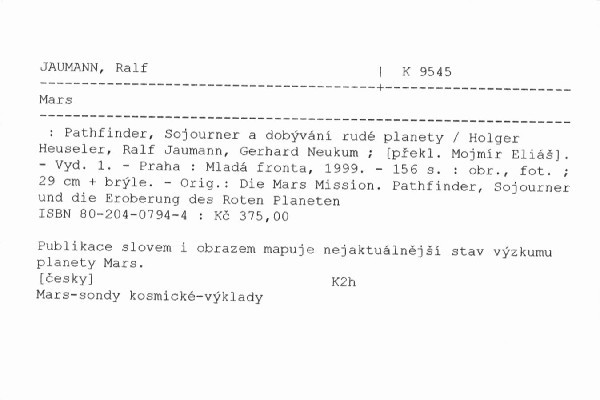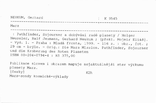 | Autor | Holger Heuseler, Ralf Jaumann, Gerhard Neukum ; [překl. Mojmír Eliáš] |