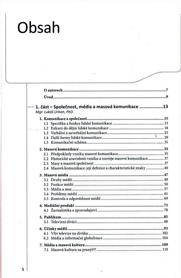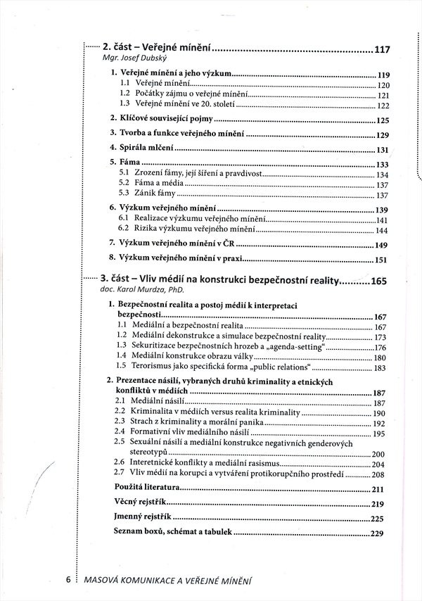 Problematika masové komunikace a veřejného mínění poutá v poslední době stále více pozornosti nejen odborné, ale i laické veřejnosti. Už při letmém pohledu na současnou společnost člověk velice rychle pochopí, proč je nazývána společností médií a informací, společností komunikující a znalostní, společností celebritní, karnevalovou a legrační. Je ale opravdu tak legrační? Renomovaní čeští a slovenští autoři koncipují svoji knihu jako vizitku současné společnosti. Analyzují proměny sociální a masové komunikace, média a jejich vybrané problémy, téma kultury a masové kultury, veřejného mínění a jeho významu. Zvláštní pozornost věnují problému mediální prezentace násilí a zločinu. Unikátní publikaci jistě ocení studenti příslušných oborů vysokých škol, vyšších odborných škol, ale i široká veřejnost. Nakladatelská anotace.