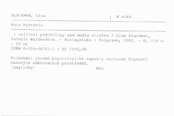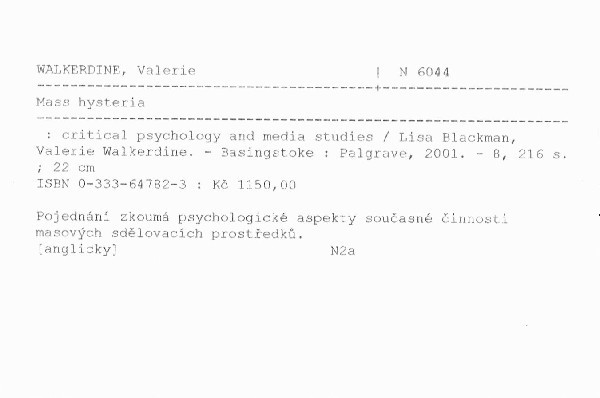 | Podnázev | critical psychology and media studies |