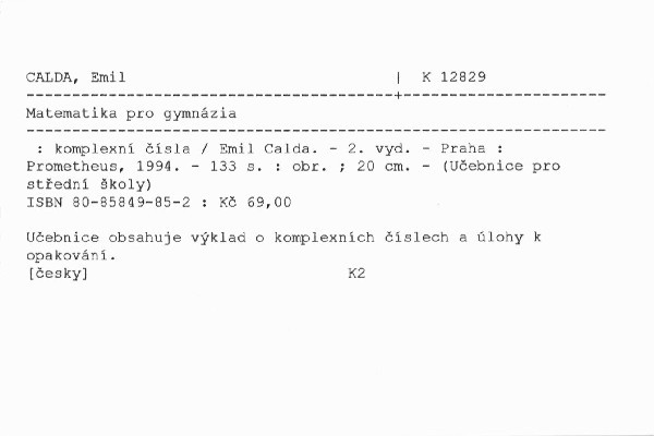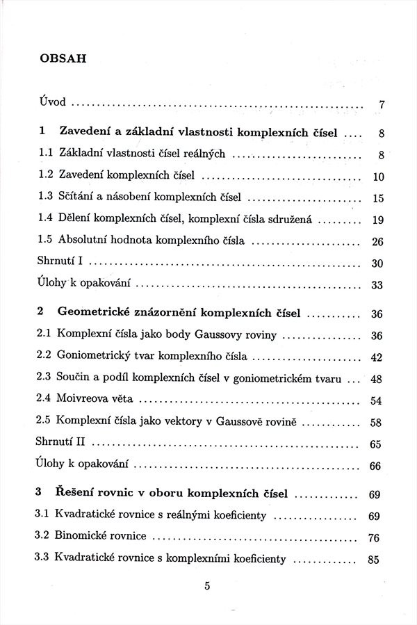 Učebnice obsahuje výklad o komplexních číslech a úlohy k opakování.