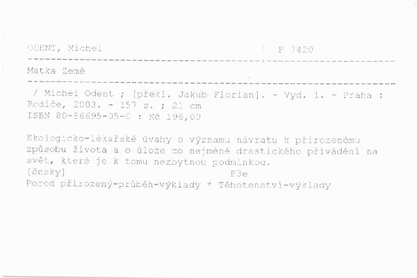 | Autor | Michel Odent ; [překl. Jakub Florian] |