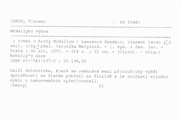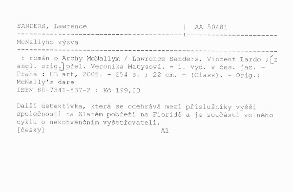 | Autor | Lawrence Sanders, Vincent Lardo ; [z angl. orig.] přel. Veronika Matysová |