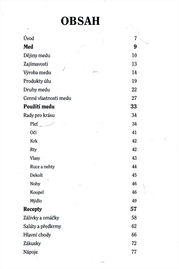 Výroba a vlastnosti medu, jeho využití pro zdraví, domácí přípravky pro krásnou pleť a tělo, kuchařské předpisy.