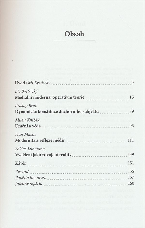 Kolektivní monografie Mediální moderna (Studie k soudobým formám de-abstrakce a mediality) nabízí čtenáři analýzu teorií a diskusí spjatých s vnímáním a interpretací světa v kontextu moderních a postmoderních médií a kultury.