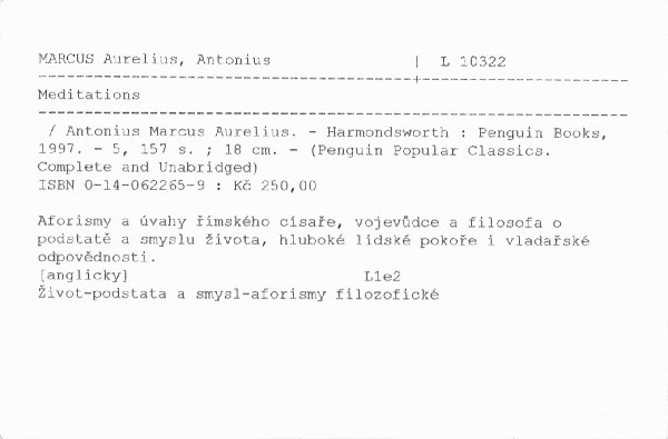 Aforismy a úvahy římského císaře, vojevůdce a filosofa o podstatě a smyslu života, hluboké lidské pokoře i vladařské odpovědnosti.