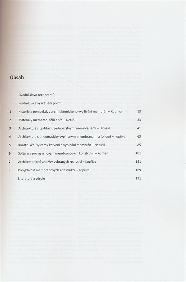 Kolektivní monografie věnovaná membránové architektuře, inspirované tvary živé a neživé přírody. Uvádí zásady navrhování membránových konstrukcí, přibližuje používání softwarové a přináší analýzu vybraných staveb.