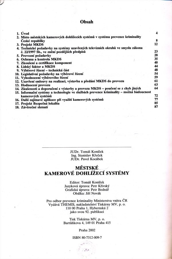 Tyto systémy slouží k dohledu v místních záležitostech veřejného pořádku i k předcházení pouliční trestné činnosti a přestupků. Jejich úkolem je vytváření bezpečných zón v exponovaných lokalitách. Kniha pojednává o provozování a využívání městských kamerových dohlížecích systémů.