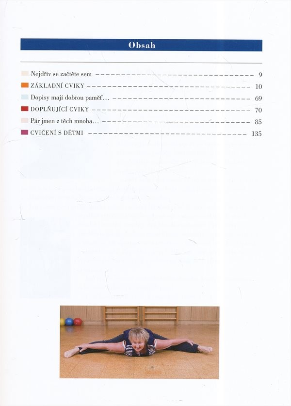 Fyzioterapeutka, žákyně Ludmily Mojšíšové, popisuje základní cviky, které pomohly mnoha ženám porodit zdravé dítě, ale také snižují bolesti zad, jsou vhodné při nepravidelné či bolestivé menstruaci, skolióze, bolestech hlavy a migrénách, při špatném držení těla, pro těhotné atd. Cvičení je vhodné pro starší osoby i pacienty s nemocným srdcem. Příručka obsahuje i doplňující cviky a cviky pro děti, dopisy vděčných maminek a příběhy známých sportovců, kterým L. Mojžíšová osobně pomohla.