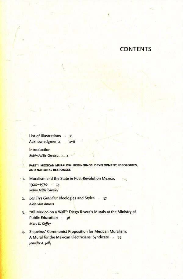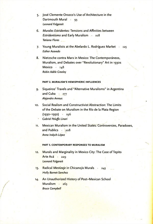 Kolektivní monografie věnovaná fenoménu mexické školy nástěnné malby (mexickému muralismu), jeho představitelům, historickým souvislostem a vlivu na soudobé malířství. Obsahuje chrolonologický přehled a základní texty spojené s tímto hnutím.