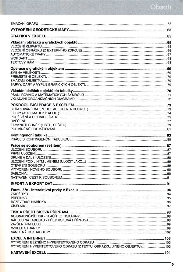 Kniha je rozdělena do několika větších kapitol podle témat a podle obtížnosti. Jednotlivé kapitoly jdou za sebou tak, aby se začínající uživatel s pomocí názorných obrázků a obrazovek Excelu seznamoval s tabulkovým procesorem postupně. Obrázky a obrazovky jsou okomentovány "bublinou s textem", poznámky, tipy, upozornění a důležité věci jsou v textu označeny piktogramy, vše zvýrazněné modrou barvou. Kniha má rozsáhlé přílohy důležitých ikon, přehledů typů grafů a seznam nejpoužívanějších klávesových zkratek.