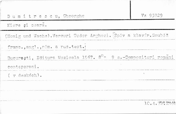 Vydání: Editura muzicală a uniunii compozitorilor din Republica socialista Romania 1967 | Jazyk: rumunština; moldavština | Signatura: VZ 95829