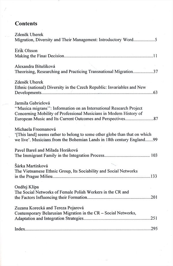 Příspěvky zaměřené na problematiku migrace. Mapují sociální situaci některých národnostním menšin našeho státu.