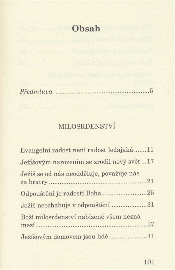 Výběr zamyšlení papeže Františka o Božím milosrdenství. Jednotlivá zamyšlení jsou zakončena modlitbou a výzvou k zamyšlení.