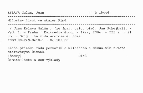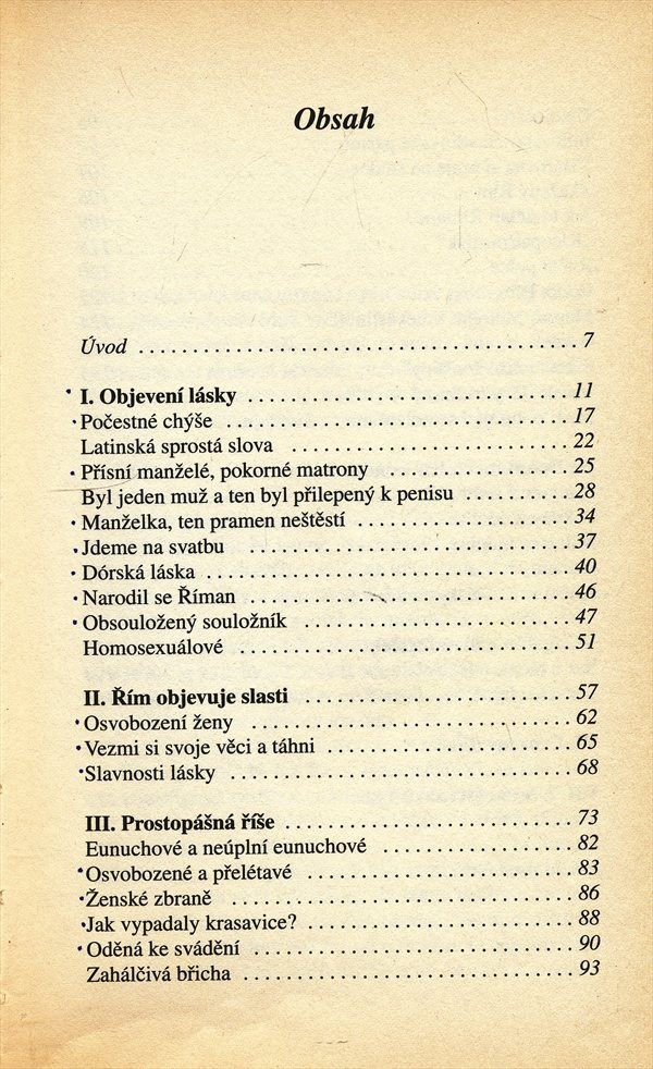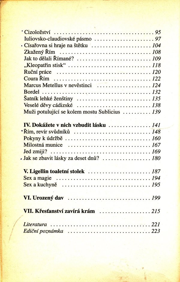 Kniha přináší řadu poznatků o milostném a sexuálním životě starověkých Římanů.