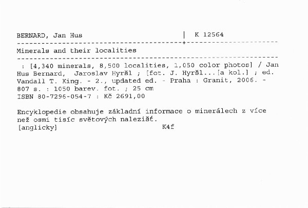 Podnázev[4,340 minerals, 8,500 localities, 1,050 color photos]