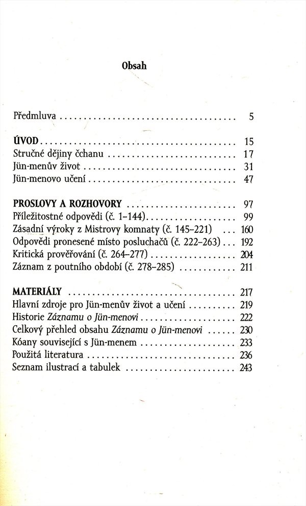 Studie švýcarského filozofa o zenovém mistru Jün-menovi, který žil v 9.-10. stol. v Číně, je doplněna o autorův překlad části rukopisu nazvaného "Záznam o Jün-menovi", který pochází z 13. stol.