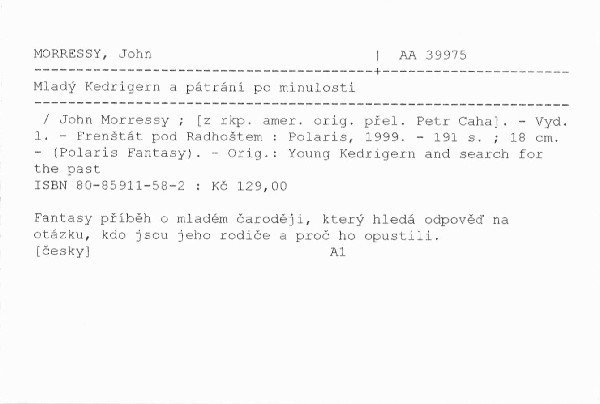 | Název | Mladý Kedrigern a pátrání po minulosti |