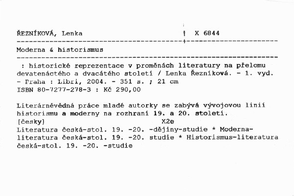 NázevModerna a historismus