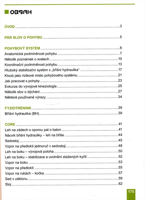 Základní informace o stavbě lidského těla, jeho držení a motorické funkci. Výběr účinných cviků, přehledně řazených do skupin, každý cvik obsahuje podrobný popis s fotografiemi.